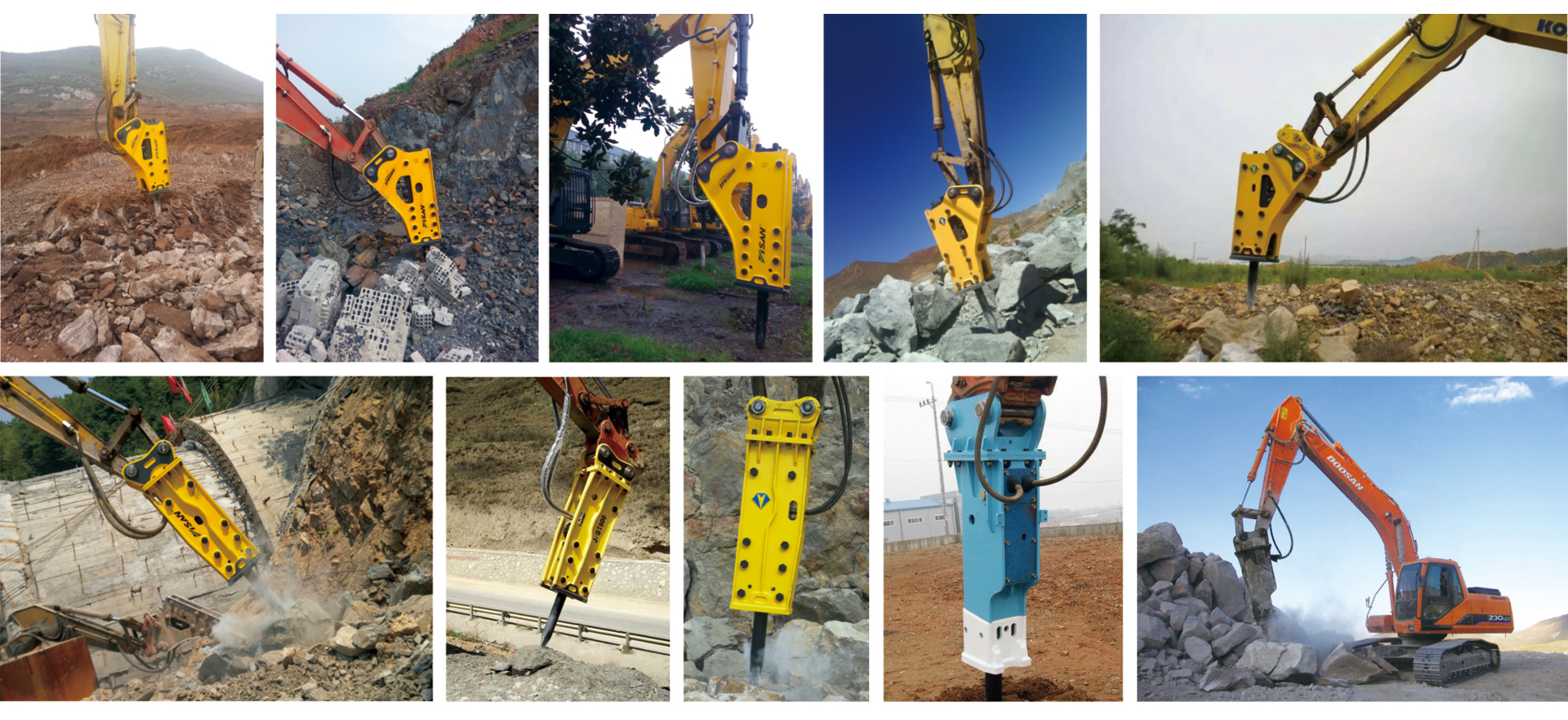 液壓挖掘機(jī)的一個重要作業(yè)工具,其利用挖掘機(jī)或裝載機(jī)的泵站提供的壓力油,能在建筑物的基礎(chǔ)作用中更有效地清理浮動的石塊和巖石縫隙中的泥土。它與液壓挖掘機(jī)等動力主機(jī)配套使用,可廣泛應(yīng)用于冶金、礦山、鐵路、公路、建筑等建設(shè)領(lǐng)域或工藝過程,對堅硬物體如巖石、鋼筋混凝土、水泥路面、舊建筑物等進(jìn)行開采、破碎、拆除作業(yè),還可以通過變換釬桿,用于鉚接、除銹、振搗、夯實、打樁等特定作業(yè),用途十分廣泛。破碎錘目前憑借其安全高效的優(yōu)勢,已經(jīng)廣泛應(yīng)用于采礦區(qū)的二次破碎中,逐漸取代了二次爆破進(jìn)行大塊破碎。在采礦作業(yè)中,液壓破碎錘在某些特殊限制條件下的應(yīng)用,呈現(xiàn)出獨特的優(yōu)勢,尤其是在選擇性采礦和無爆破采礦作業(yè)中優(yōu)勢更加明顯,是一種新型采礦方法。