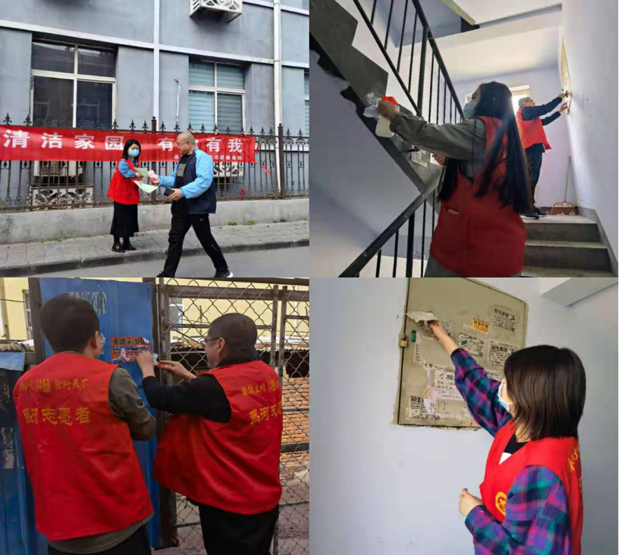 境。并到街道及居民住宅樓道內(nèi)清理小廣告,為居民營(yíng)造干凈整潔的居住環(huán)境。