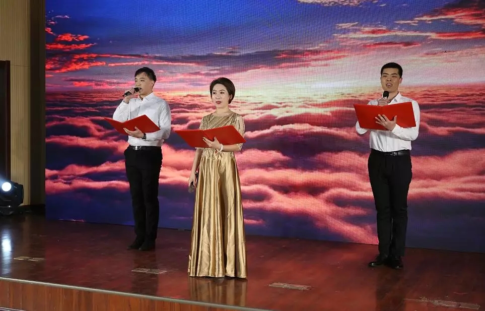 演出在歌伴舞《不忘初心》中拉開序幕,節(jié)目內(nèi)容豐富多彩、形式多樣,有情景劇、歌伴舞、小品、詩朗誦等,充分展示了集團(tuán)員工良好的精神面貌。演員們個個精神飽滿,情緒高昂,以最好的狀態(tài)將節(jié)目奉獻(xiàn)給大家,贏得了觀眾陣陣掌聲。