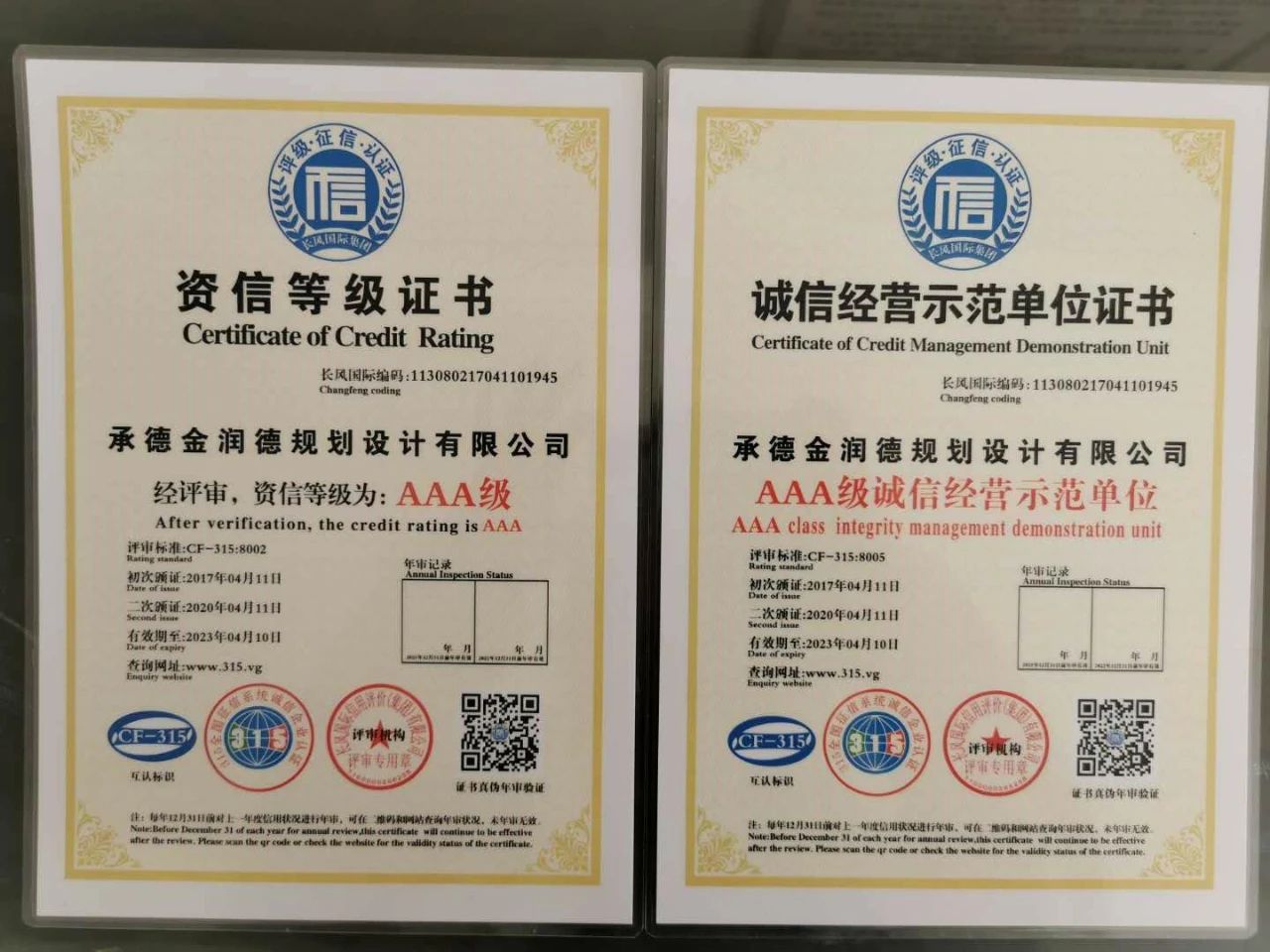 示范單位證書”、“AAA級(jí)質(zhì)量服務(wù)榮譽(yù)證書”、“AAA級(jí)重合同守信用證書”并得到了“AAA級(jí)信用單